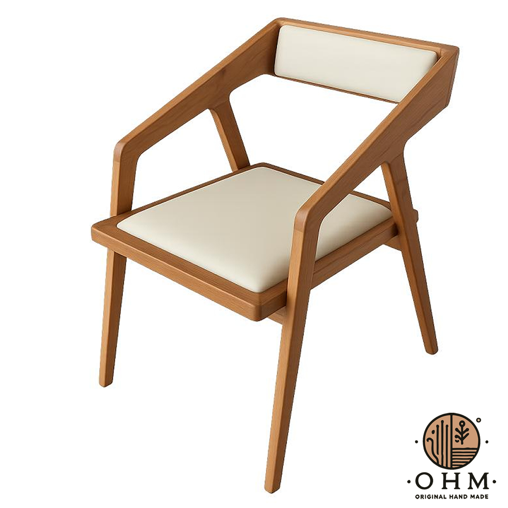 Cadeira Katakana - Madeira Maciça de Acácia e Pele Genuína