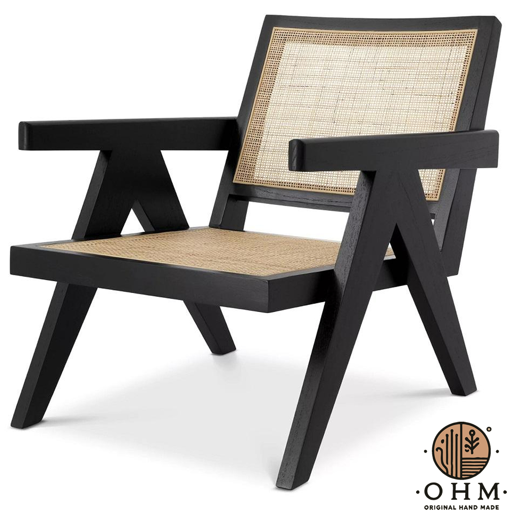 Poltrona Rattan - Madeira Maciça de Acácia e Vime de Rattan - Preto