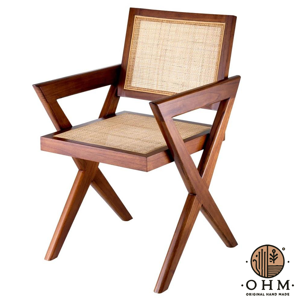 Cadeira de Design Contemporâneo em Madeira maciça de Acácia Avermelhada e Rattan Natural colocado à mão.